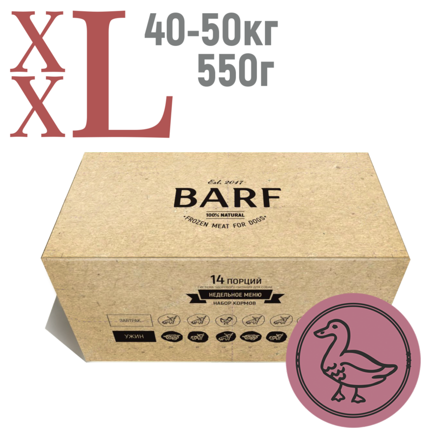 Недельный комплекс – основная рецептурная концепция BARF. Это базовый, сбалансированный набор из говяжьей обрези и субпродуктов, овощей, мясокостных ингредиентов (шеи утки) с натуральными витаминами и минералами.
